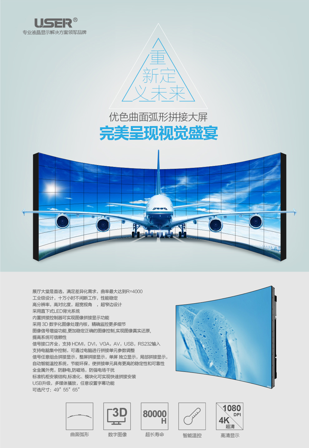 菜單產品中心Product center 液晶廣告機 壁掛式廣告機 落地立式廣告機 電梯超薄廣告機 車載廣告機 高亮廣告機 戶外廣告機 液晶拼接屏 專業液晶拼接屏 4K液晶拼接屏 廣告拼接屏 無縫液晶拼接屏 觸摸液晶拼接屏 LED顯示屏 觸控一體機 壁掛式觸控一體機 立式觸控一體機 斜面觸控一體機 智能家居觸控一體機 戶外觸控一體機 液晶電子白板 教育電子白板 會議電子白板 工控一體機 觸摸顯示器 紅外觸摸顯示器 電容觸摸顯示器 電阻觸摸顯示器 聲波觸摸顯示器 納米觸摸顯示器 液晶監視器 專業級監視器 4K監視器 嵌入式監視器 機架式監視器 開放式監視器 SDI監視器 高亮監視器 廣播級監視器 工業顯示器 4K顯示器 機架式顯示器 開放式顯示器 醫療顯示器 KVM顯示器 指揮室顯示器 智慧校園產品 專業定制商顯 多屏廣告機 多功能觸控一體機 多功能廣告機 微信打印廣告機 魔鏡廣告機 透明廣告機 全息廣告機 條形屏廣告機 旋轉廣告機 裸眼3D廣告機 人工智能產品 顯示配套設備 拼接配套設備 廣告機播放盒 OPS播放盒 拼接支架 移動支架 相關軟件 吊頂支架 線材 木架 蜂窩箱 桌面底座 熱門產品 →優色3.5mm超窄邊46寸液晶拼接屏→優色49寸3.5mm超窄邊液晶拼接屏→優色3.5mm超窄邊55寸液晶拼接屏 您的位置:首頁 → 公司產品 → 液晶拼接屏 → 廣告拼接屏 優色弧形單元廣告液晶拼接屏類別:廣告拼接屏 簡介: 在線咨詢 返回列表 產品說明 相關產品 優色弧形單元廣告液晶拼接屏 廣告液晶拼接屏