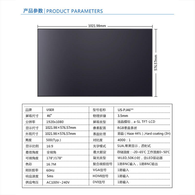 優(yōu)色3.5mm超窄邊46寸液晶拼接屏類別:專業(yè)液晶拼接屏