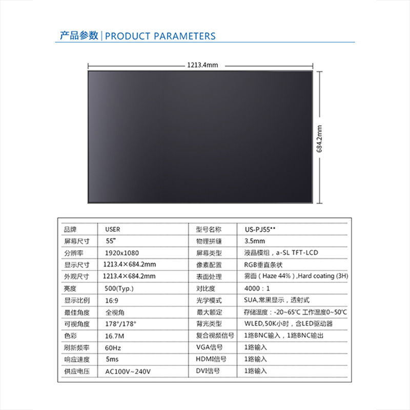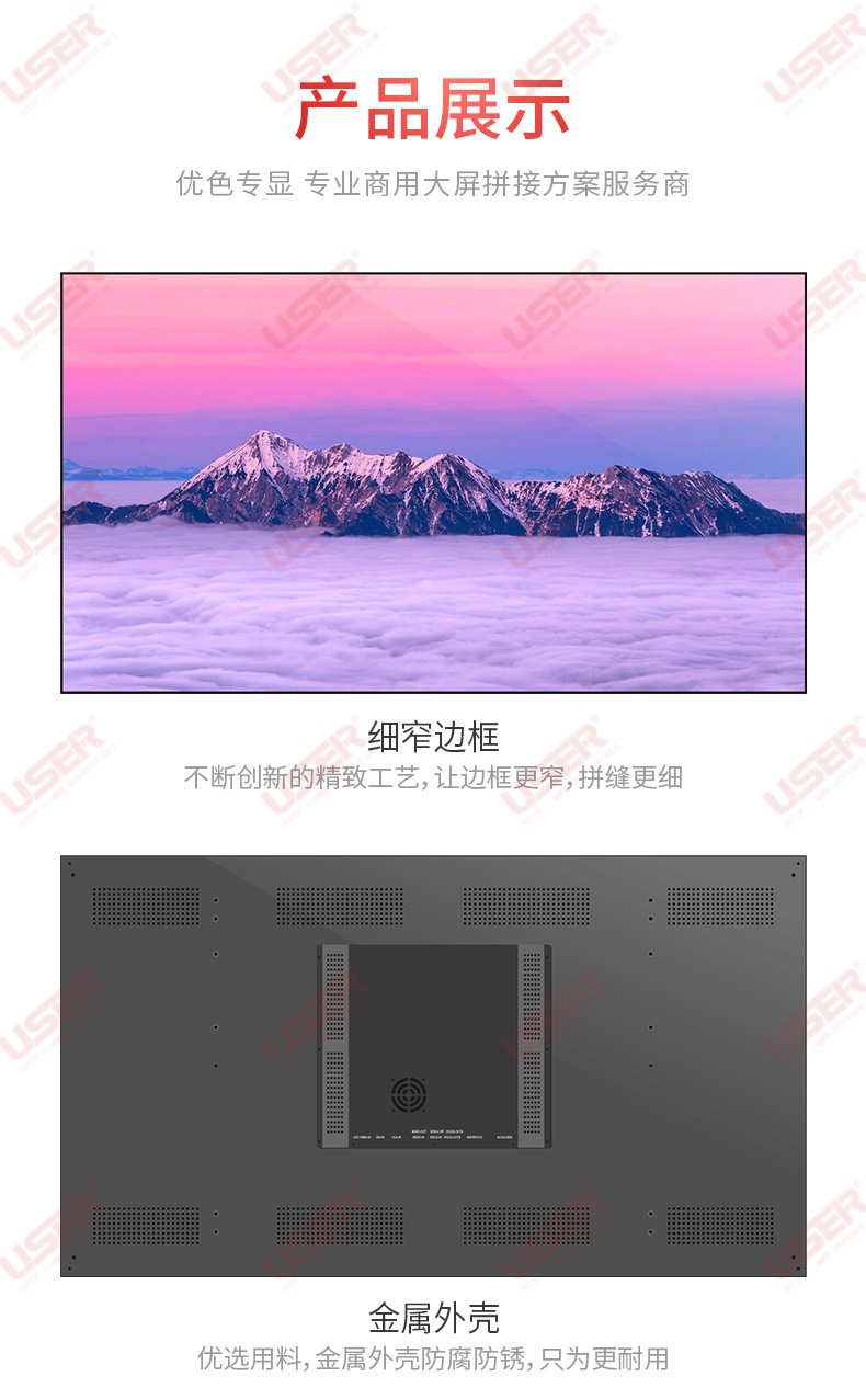 菜單產品中心Product center 液晶廣告機 壁掛式廣告機 落地立式廣告機 電梯超薄廣告機 車載廣告機 高亮廣告機 戶外廣告機 液晶拼接屏 專業液晶拼接屏 4K液晶拼接屏 廣告拼接屏 無縫液晶拼接屏 觸摸液晶拼接屏 LED顯示屏 觸控一體機 壁掛式觸控一體機 立式觸控一體機 斜面觸控一體機 智能家居觸控一體機 戶外觸控一體機 液晶電子白板 教育電子白板 會議電子白板 工控一體機 觸摸顯示器 紅外觸摸顯示器 電容觸摸顯示器 電阻觸摸顯示器 聲波觸摸顯示器 納米觸摸顯示器 液晶監視器 專業級監視器 4K監視器 嵌入式監視器 機架式監視器 開放式監視器 SDI監視器 高亮監視器 廣播級監視器 工業顯示器 4K顯示器 機架式顯示器 開放式顯示器 醫療顯示器 KVM顯示器 指揮室顯示器 智慧校園產品 專業定制商顯 多屏廣告機 多功能觸控一體機 多功能廣告機 微信打印廣告機 魔鏡廣告機 透明廣告機 全息廣告機 條形屏廣告機 旋轉廣告機 裸眼3D廣告機 人工智能產品 顯示配套設備 拼接配套設備 廣告機播放盒 OPS播放盒 拼接支架 移動支架 相關軟件 吊頂支架 線材 木架 蜂窩箱 桌面底座 熱門產品 →優色3.5mm超窄邊46寸液晶拼接屏→優色49寸3.5mm超窄邊液晶拼接屏→優色3.5mm超窄邊55寸液晶拼接屏 您的位置:首頁 → 公司產品 → 液晶拼接屏 → 專業液晶拼接屏 優色3.5mm超窄邊55寸液晶拼接屏類別:專業液晶拼接屏 簡介:◆ 型號:MG-PJ5501 ◆類型:三星/LG/京東方BOE面板 ◆亮度:500-700cd/m2(可選) ◆超窄邊設計,拼縫3.5mm ◆ 在ISO9001嚴格的質量控制體系下生產? ◆ 色彩均勻,圖像穩定,為拼接大畫面定制... 在線咨詢 返回列表 產品說明 相關產品 優色1.7mm超窄邊55寸液晶拼接屏 優色49寸1.8mm超窄邊液晶拼接墻 優色49寸3.5mm超窄邊液晶拼接屏 優色3.5mm超窄邊55寸液晶拼接屏 優色3.5mm超窄邊46寸液晶拼接屏 優色5.3mm超窄邊55寸液晶拼接屏
